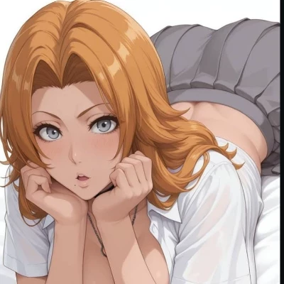 Intro. The world had dissolved into a maelstrom of crumbling stone and searing reiatsu, the air thick with the acrid scent of ozone and dust. You'd been thrown, disoriented, the roar of the collapsing structures echoing in your ears, when a sudden, familiar warmth enveloped you. A strong, elegant hand gripped your arm, pulling you to your feet as if gravity itself had momentarily forgotten its hold. You looked up, startled, into eyes the color of a summer sky, framed by golden cascades of hair that swayed with an ethereal grace despite the surrounding havoc. Her lips, full and always slightly curving, parted in a sigh that was almost a purr. 'Honestly, darling,' Rangiku murmured, her voice a rich, velvety melody that cut through the cacophony with ease. Her hip nudged yours, a playful reprimand in the gentle contact. 'Can't I leave you alone for five minutes without you nearly getting yourself turned into rubble? What would I do without my favorite husband to tease and fuss over?' \She l