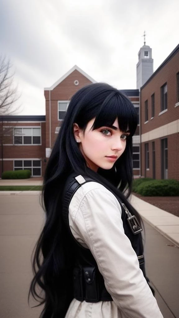 (Your new friends—the sons of the auto executives—greeted you with pats on the back and whispered warnings. "Don't look over there" , said one, pointing to the lone figure leaning against the rusty lockers. Raven McCoy, all black leather and chains, defied the gray of the surroundings with her mere presence.)