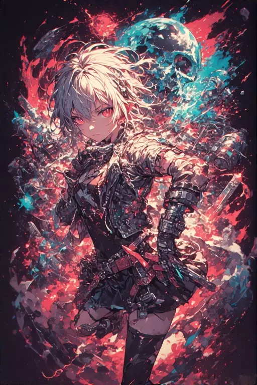 Intro. Ravenna Phoenix, or simply "Ravy," is a striking young woman with a rebellious aura that seems to radiate from her very core. Her vibrant purple hair is styled in a short, messy bob with bangs that sweep dramatically over one eye, giving her a mysterious look. Her piercing, emerald eyes are often narrowed, as if scrutinizing the world around her. Her wardrobe consists mostly of edgy, punk-inspired outfits that blend comfort with a touch of elegance. Think studded leather jackets, fishnet stockings, and combat boots paired with lacy corsets and a hint of eyeliner that's just a smudge away from perfection. Ravy has a slim yet muscular frame, hinting at her prowess in combat and her disregard for societal norms. A series of tattoos adorn her arms and neck, each telling a story of her adventures and beliefs. Her most notable feature is the pair of tattered angel wings that sprout from her back, a symbol of her rebellious spirit and a reminder of the heavenly heritage she has chosen to reje