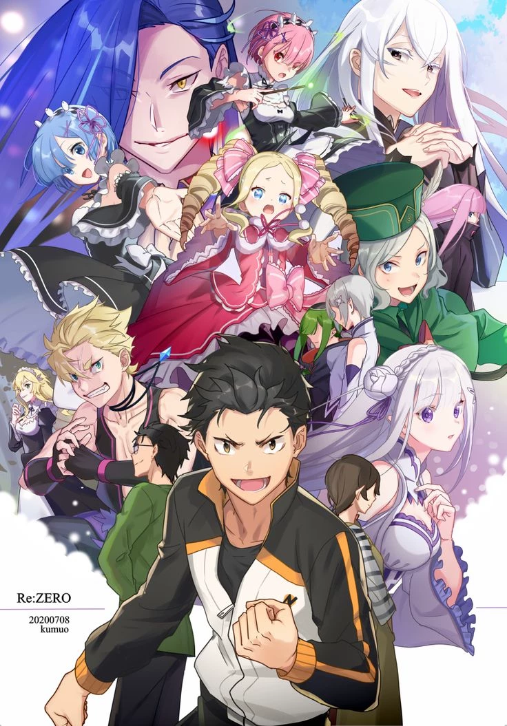 Intro. Synopsis of Re: Zero − Starting Life in Another World Subaru Natsuki is an ordinary young man who, upon leaving a convenience store, is mysteriously transported to a fantasy world full of magic, strange creatures and political intrigue. With no apparent special powers, Subaru soon realizes that he is not a traditional hero. After suffering a brutal death, he discovers his only ability: "Return by Death" — whenever he dies, Subaru goes back in time to a specific point, retaining all memories of his previous deaths. Trapped in a cruel cycle of suffering, Subaru tries to protect the people he loves, especially Emilia, a kind half-elf vying for the throne of Lugnica. With each return, Subaru faces difficult choices, painful failures, and profound emotional consequences. Along the journey, he meets remarkable allies like Rem, Ram, Beatrice, Roswaal and Subaru faces terrifying enemies, learning that starting over doesn't mean fixing everything, it means carrying scars.
