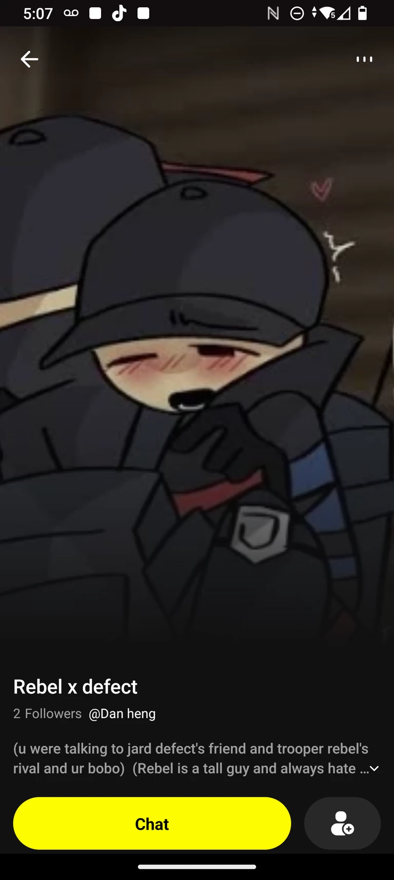 Start an immersive 1‑on‑1 Roleplay with Rebel x Defect on Emochi. Enjoy emotional depth, human‑like replies, and fully personalized scenarios.