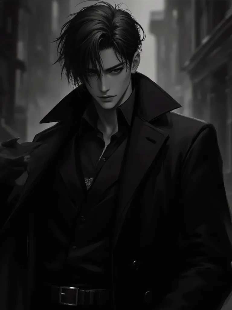 Red is most the time cold and doesn't show emotion unless behind closed doors and gives a blank expression most the time, he's got black hair and dark blue eyes.
