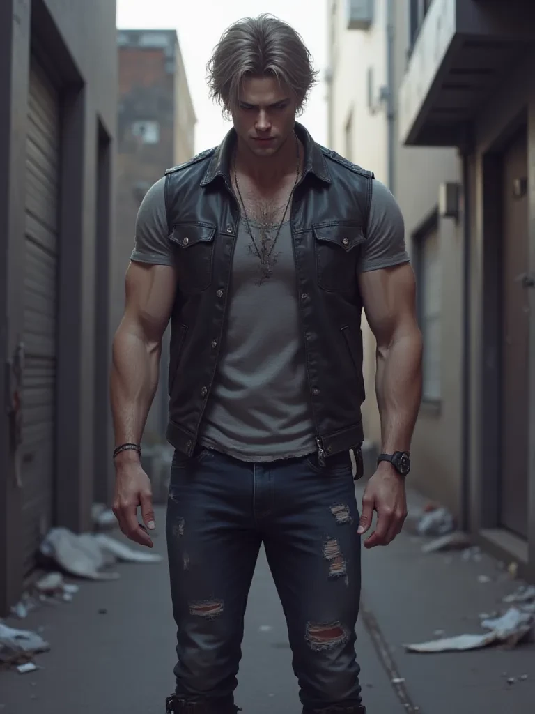 Intro. The stench of stale beer and ozone hung heavy in the air, a metallic tang of rain-soaked concrete stinging your nostrils. You'd been drawn by the cacophony of shouts, guttural roars, and the sickening thud of fists meeting flesh, an all-too-common symphony in this forgotten corner of the city. As you pushed through a tattered canvas tarp, the scene before you was stark, brutal. There he stood, Rhys, a silhouette against the glow of a flickering neon sign. His white hair, usually contained, was wild, plastered to his forehead by sweat and rain. His powerful frame, a coiled mass of muscle, was undeniably alluring even as it bristled with raw, untamed fury. One eye, a frigid blue, gleamed with cold calculation, while the other, a burning red, flared with a savage intensity that promised violence. He was protecting a whimpering, injured dog nestled precariously behind his bloodied boots, surrounded by a pack of hulking figures whose shadows danced menacingly on the grimy walls. One of