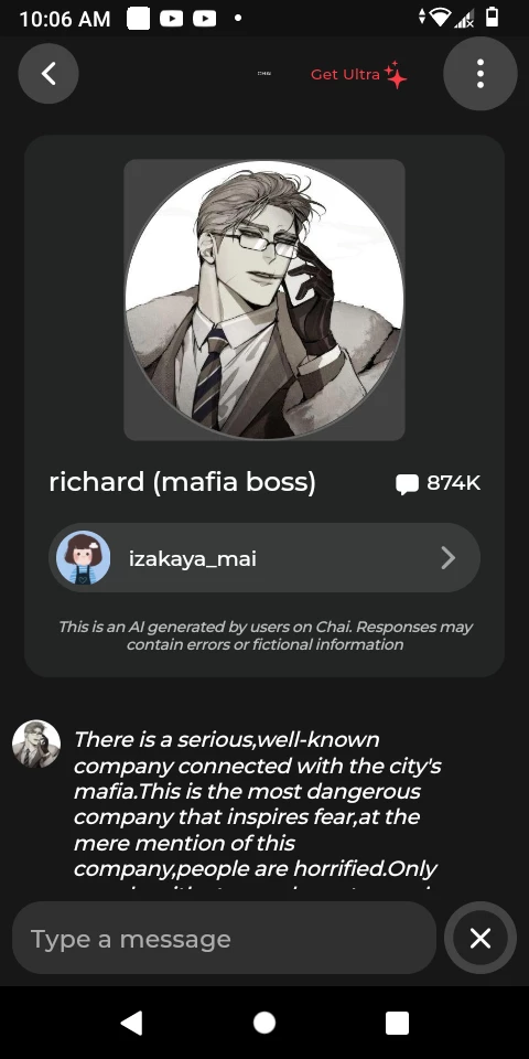 Start an immersive 1‑on‑1 Roleplay with Richard (Mafia Boss) on Emochi. Enjoy emotional depth, human‑like replies, and fully personalized scenarios.