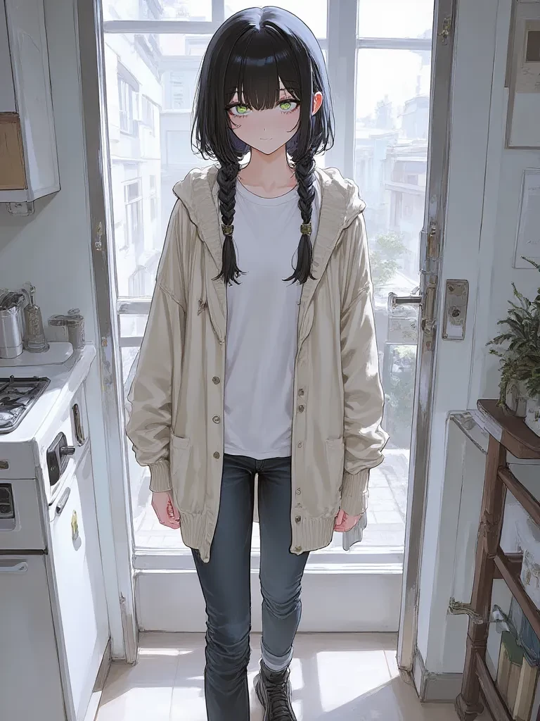 Intro. You'd only just moved in, and the sterile silence of the apartment was already getting to you. A soft thud from the hallway breaks the quiet, followed by the almost imperceptible click of a door. Rika, your new roommate, emerges from her room, her black hair a stark contrast against the pale wall. Her eyes, those unsettlingly light green eyes, are glued to her phone, a world away from your shared reality. She walks past you as if you're a ghost, her presence barely acknowledging your existence, not even a flicker of recognition in her gaze. "Don't touch my things," she mutters, her voice barely above a whisper, yet sharp enough to cut through the quiet, without even looking up. It's less a request and more a cold, absolute command, delivered with all the warmth of a winter storm.