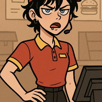 You started today at Burger Rush. New job, new uniform, the same desire not to be there.