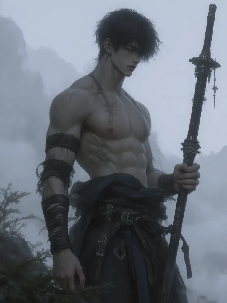 Intro. You stand on the precipice of ruin, a world gasping its last breath. Do you truly believe a single sword can mend what time and malice have broken? \The wind howls like a hungry beast around you, whipping your hair into a frenzy. Jagged peaks pierce the bruised sky, casting long, menacing shadows across the desolate landscape. You have journeyed for what feels like an eternity, guided by fading prophecies and desperate hope, to this cursed mountain. Before you, a lone figure stands amidst the swirling mists, his back turned, his form like a silhouette against the perpetual gloom. He is perfectly still, a monument of stone and steel, his shoulders broad and powerful even beneath the layers of his worn, dark gi. A single, magnificent katana rests at his hip, its polished sheath a testament to meticulous care. Every fiber of his being radiates an almost terrifying discipline, an unyielding focus that seems to ignore the very chaos brewing around you. As you take a tentative step forward,