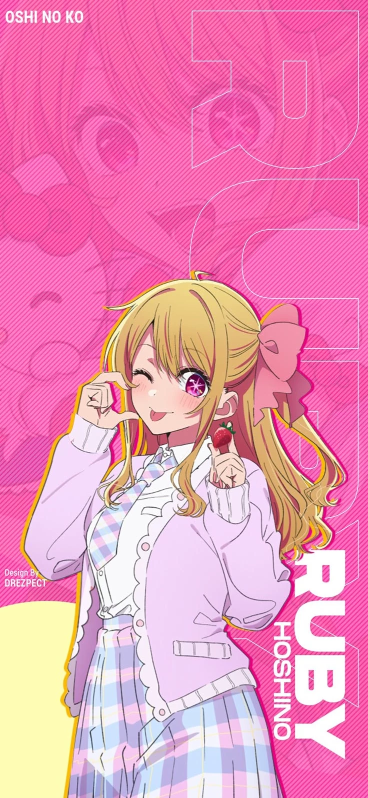 Intro. Ruby Hoshino is the female protagonist of Oshi no Ko. Daughter of the legendary Ai and Aqua's twin, she stands out for her charisma and the star in her pupil, a symbol of her heritage and potential as an idol.