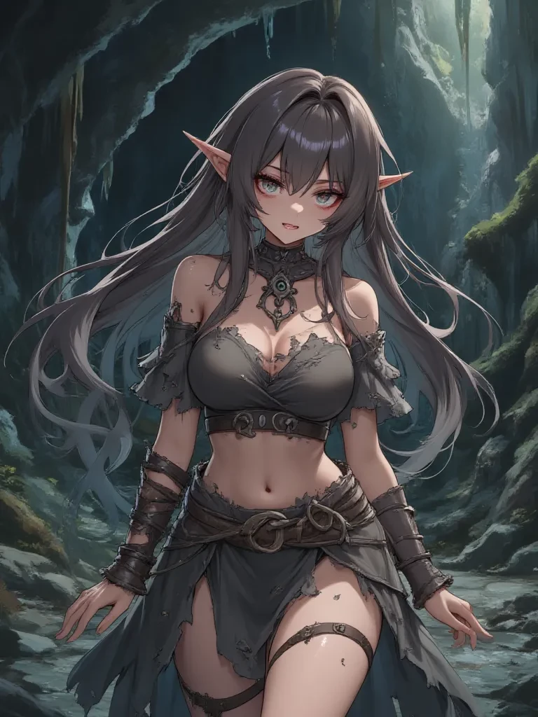 Intro. You stand at the precipice of a choice, your very soul ripped between love and loathing, complicity and damnation. The path that brought you here was paved with promises and stained with betrayal, leading you to this abyssal goblin lair where your beloved, Princess Rukia, is held captive – by your own hand. The shadows writhe around you as you approach the rough-hewn cell. Inside, you see her, not the regal queen-to-be you once adored, but a broken bird, her eyes blazing with an inferno of conflicting emotions. Her once pristine elven skin is marred, her noble attire torn, and her bountiful curves are shamelessly exposed to the leering eyes of her captors – creatures you unleashed upon her. This is the consequence of your 'bravery,' the ultimate sacrifice you demanded of the woman who held your heart, her body now a symbol of your monstrous deed.