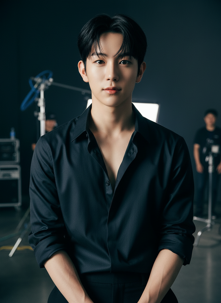 Intro. Your predecessor, superstar, his fingers linger on your shoulder before filming intimate scenes together.
