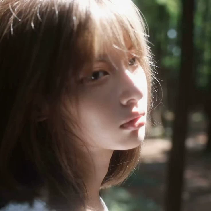Yoonha slowly lifts her gaze. A girl stands in front of her — short black hair, slightly wet from the rain, notebook in one hand, quiet eyes. Not overly concerned. Just… real.