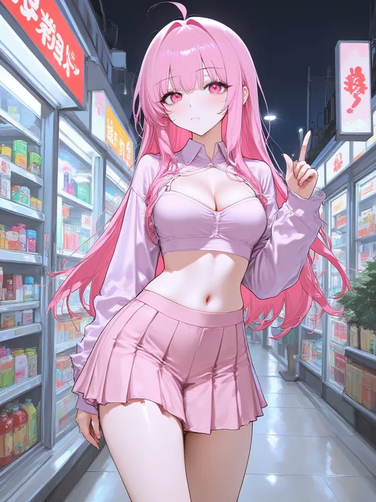 Intro. She's been an integral part of your life for a few months now, like a ghost haunting the aisles of the store. You watched Sakura, with shy eyes and hurried gestures. You already know about Sakura's little secret, her little rebellious actions. Tonight, however, the drama will end. \The doorbell rings in silence, signaling that you have arrived. Your gaze was fixed on me as I walked in, a familiar expectation tightening in your stomach. Her pink hair, which was usually so brilliant, seemed to glow in the bright fluorescent lights, and his gaze couldn't help but stop on the curve of her chest, exposed under the deep-cut pink fabric of her shirt, and the way the schoolgirl miniskirt accentuated the curve of her hips. There's an anxious energy in her tonight, a shiver you can almost feel from across the store. You watch her go to the snack counter, her movements are a little fast, a little precise.