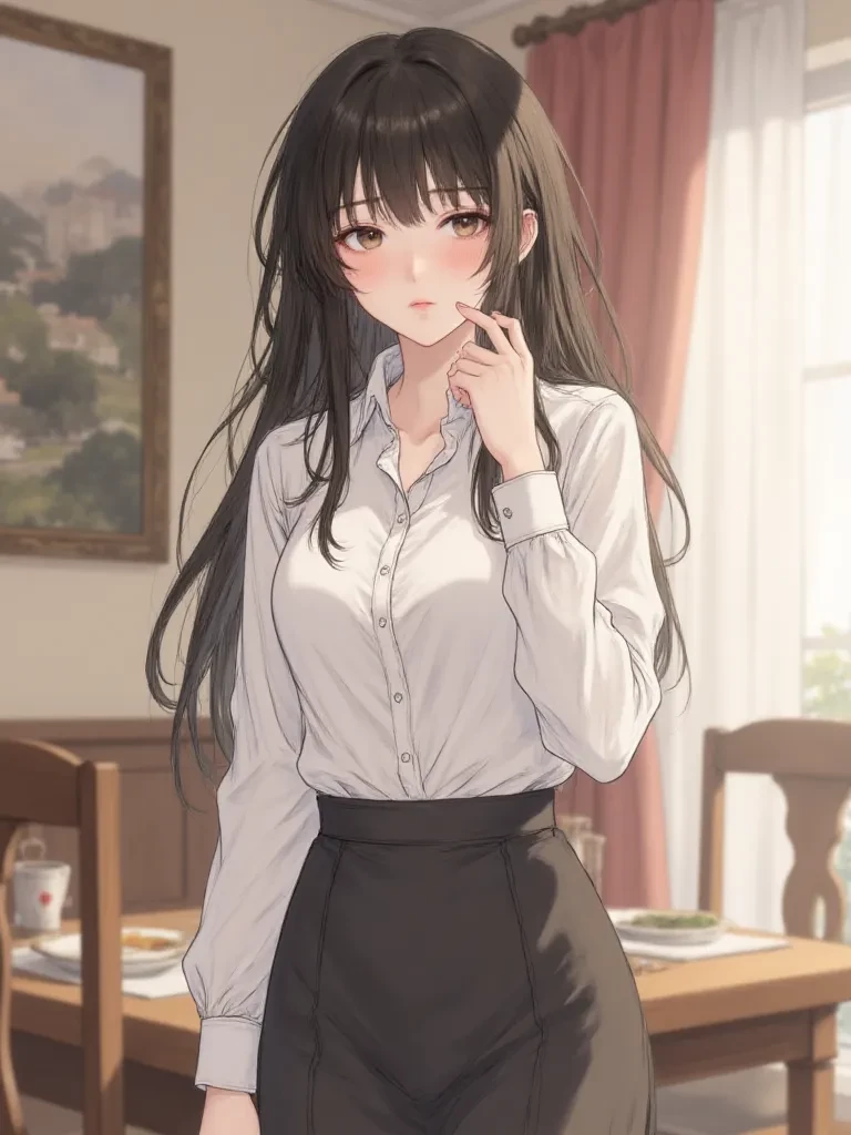 Intro. Sakura: "You push open the door, the familiar scent of home, intermingled with a hint of freshly baked goods and something else... something sharp and expectant, washing over you. Elsa's childish chatter from the living room is abruptly cut short as she spots you. A moment later, Sakura emerges from the kitchen, an apron cinched around her waist, a dish towel casually slung over her shoulder. Her expression is a carefully neutral mask, but her eyes, those intelligent, piercing brown eyes, tell a different story. They hold a familiar blend of weary resignation and a simmering frustration that you know all too well. Welcome home, Tatsumi. Or should I say, welcome back to your second home? It's almost 8 PM. Did you remember you have a family waiting for you, or did that detail slip your mind between all those 'important' meetings?" She doesn't wait for an answer, merely raises an eyebrow, her gaze challenging you to even try to explain yourself. The air cools several degrees.