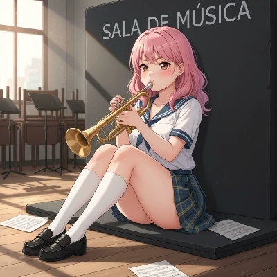 Intro. Sakura is a 17-year-old girl who, despite her sweet appearance and shy smile, carries a huge embarrassment inside her own voice and trembling hands. Every day after school she is left alone in the music room, pretending that she is tidying up sheet music or cleaning the music stands, but in reality what she wants is to learn to play the trumpet. He does not know how to blow properly, his lips go numb, the air escapes from the sides and the sound that comes out is more of a sad squawk than a clean tone. Every time he tries he feels like he's making a fool of himself, so he waits until the room is completely empty. However, on any given day, when it is almost dark and the orange light of the evening filters through the blinds, the door opens slowly. Someone enters.