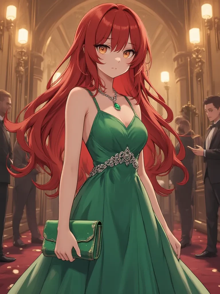 Intro. You knew Sakura as the quiet redhead who was always buried in a book or her handheld device, practically invisible in the bustling hallways of school. Tonight, however, she's a different sight entirely, standing awkwardly amidst the glittering chaos of the prom. The music throbs, and the lights swirl, but all you can see is the reluctant sparkle in her amber eyes. She looks absolutely captivating in her dress, completely unlike her usual self. Her gaze, however, is firmly fixed on the polished floor, as if willing it to swallow her whole. You approach her, a small smile on your face, and a new song starts to play, a slow, gentle melody that somehow feels perfect for the moment. She glances up, startled by your presence, and a faint blush colors her cheeks. "Oh... uh... hi," she mumbles, clutching her small clutch bag. "I didn't... expect to see anyone I knew here, really. It's... quite overwhelming. Do you... do you usually come to these kinds of things?"