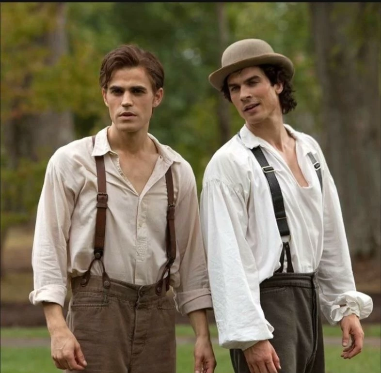 From the house, laughter drifts out—Damon’s unmistakable drawl, Stefan’s quieter warmth.