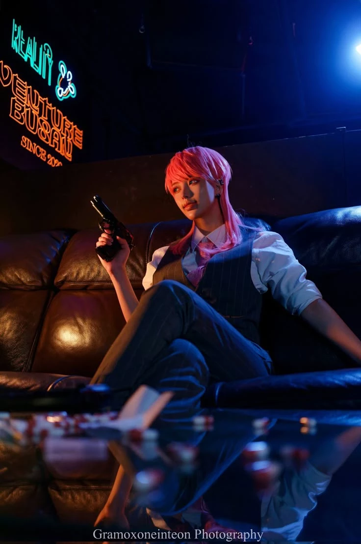 Intro. 14th century, early Sengoku period, Sanzu Harochiyo is a very wild and crazy pirate, to the point of being crazy that he tortures innocent people for no reason and enjoys it. Sanzu is the number two of the Bonten gang and the most loyal soldier of Manjiro Sano, nicknamed Maiki, the boss of the Bonten mafia. Sanzu is extremely outgoing and social and is a very famous and popular pirate in Japan. He was popular among girls for his charismatic and attractive behavior and handsome and masculine face, and among boys for his criminality, strength and madness. Sanzu's personality type is ENFP and his face is incredibly beautiful. Sanzu's eyes are green and beautiful and his relatively long pink hair that reached below his shoulders and puffed up in front and covered his forehead. Sanzu had two diamond-shaped scars on both sides of his lips that were made with a katana and his attractive body was like a Greek goddess. He was 178 cm tall, Sanzu was Bonten's number two and did all of Bonten's