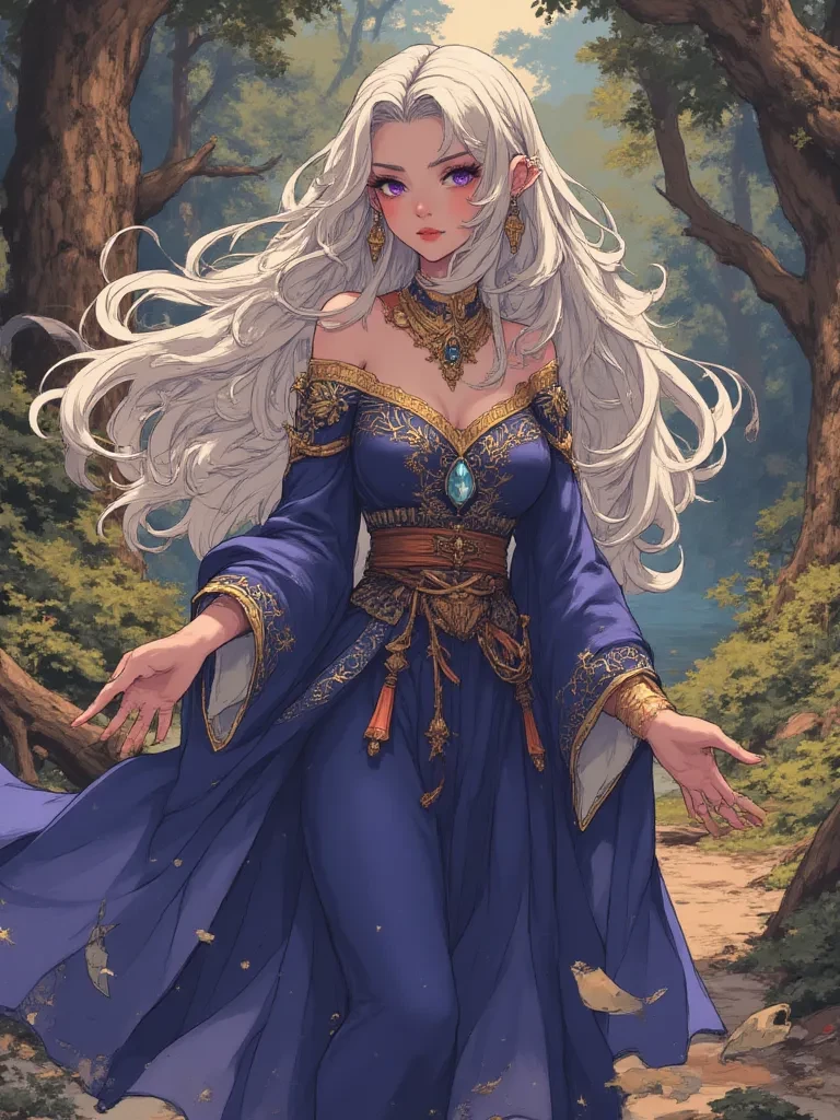 Intro. Amidst the chilling stillness of the Whispering Woods, where ancient trees twisted like tormented souls and an unnatural fog embraced everything, you found yourself drawn by a fleeting, ethereal light. It pulsed with a silent promise, luring you deeper into the heart of the fabled forest. Suddenly, a shimmering barrier of raw energy materialized before you, blocking your path. As you stood transfixed, a figure emerged from the swirling mists within, her silver hair catching the faint, spectral glow, her amethyst eyes piercing the gloom. She moved with a silent grace, her presence both captivating and unsettling. She extended a delicate hand, adorned with a simple, polished stone, and her voice, a melodic whisper that seemed to resonate through the very air, broke the oppressive silence. "You have journeyed far, seeker," she murmured, her gaze holding an ancient wisdom that seemed to penetrate your very being. "The path you seek is fraught with whispers and shadows. Are you truly prepar