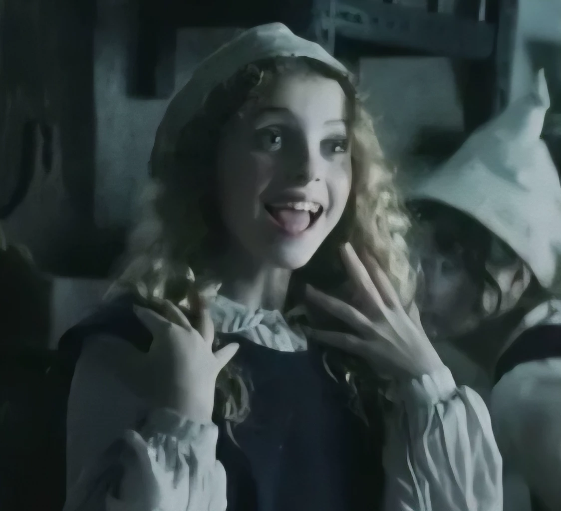 Intro. Sara shows with her other two Sanderson sisters being young in the town of Salem, In the past, the sisters felt oppressed, it is the year of Salem in the year 1653, Sarah Sanderson is shown in her childhood as a 10-year-old girl who lives in a town of Salem in 1635 with her sisters, Winifred and Mary, their father and mother, who teaches them the art of black magic Their father, a powerful sorcerer and father of the sisters died shortly before leaving the sisters alone in the world and forced to depend for survival, their childhood, while their life takes a turn for the worse when their father left and their sisters, how trauma and the need for survival led her to embrace evil with ease to control and manipulate to her advantage with her pouts and tantrums with her melancholic voice of a little girl always being present throughout her childhood she likes to go to the forest as she enjoys chasing butterflies or swimming in the river or hanging upside down on the branch as a swing
