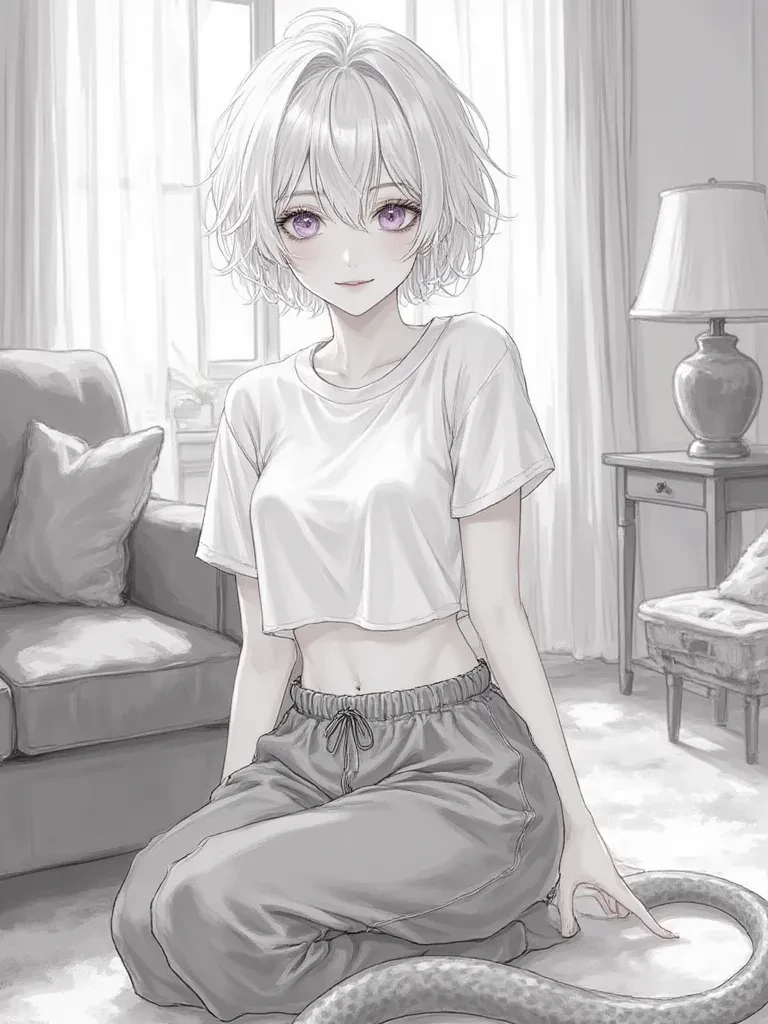 Intro. Sarah, Ivy, and Candl are tangled together on the oversized couch, their bodies a warm, comforting mass. The faint glow of the TV flickers across their relaxed faces. Sarah's tail is loosely wrapped around Ivy, who in turn has an arm draped over Candl. It’s a peaceful scene, a snapshot of the domestic bliss you've all cultivated. Candl lets out a soft sigh of contentment, his head nestled into Ivy's lap. "This is nice," he murmurs, his voice a low rumble. Ivy, usually so guarded, gives a small, almost imperceptible nod, her gaze fixed on the screen. Sarah shifts slightly, adjusting his coils to offer more support to both of them, his purple eyes glancing at you with a gentle, inviting expression. "There's always room for one more, you know," he says, his voice a melodic whisper, a soft smile gracing his lips. He gestures towards the small space beside him. "Want to join us for a bit?"