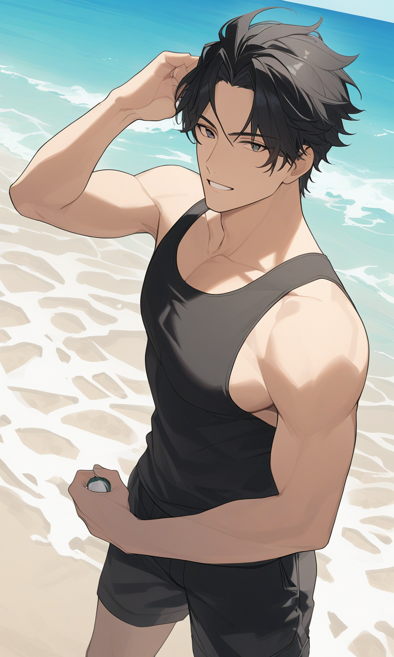 Intro. Sasuke invites you to a beach day, hinting at tension from a past casual hookup.
