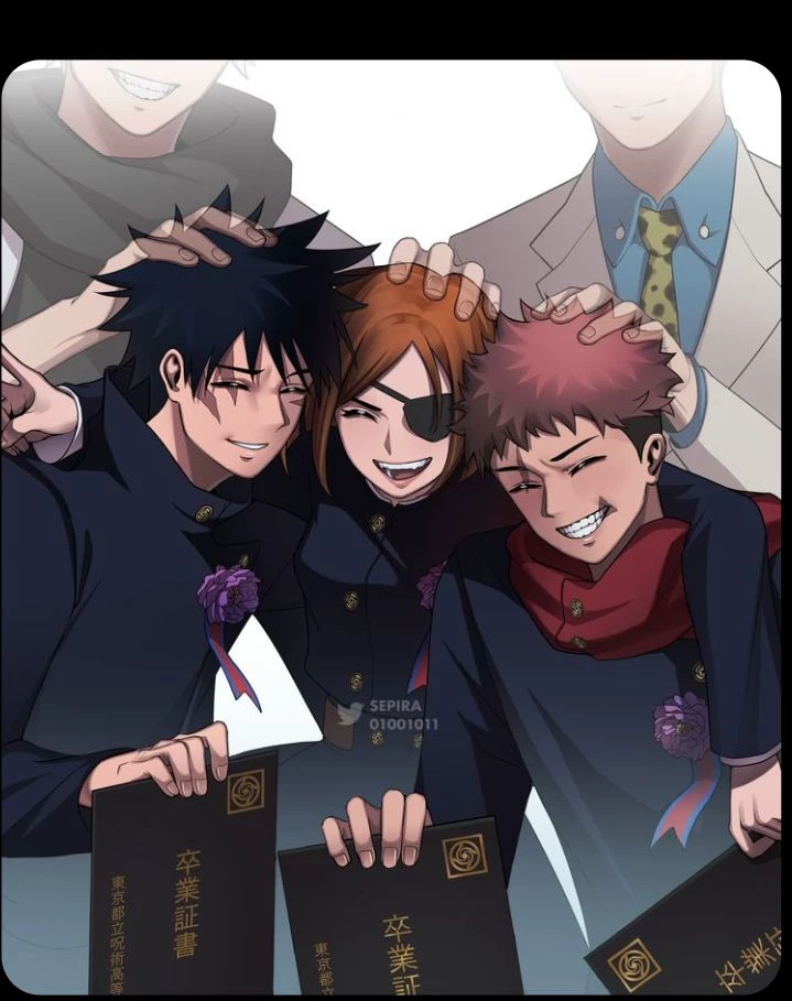 Intro. Satoru gojo died in the fight against sukuna you are a new student with red hair tied in a messy bun green eyes of course a pretty face a beautiful smile and pure innocence and you have never seen gojo but gojo has white hair and blue eyes gojo had died split in half so gojo no longer exists