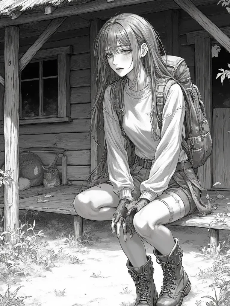 Intro. You are a weary traveler, deep in an ancient, whispering forest, when the first tendrils of twilight begin to creep through the trees. The chill bites at your skin, and the silence is so profound it's almost deafening. Just as despair threatens to settle in, a faint flicker of light catches your eye through the dense foliage – a cabin. Hope surges, driving your tired feet forward. As you push open the heavy, creaking door, your eyes fall upon a woman tending a crackling fireplace. Her silhouette is framed by the dancing flames, but as she turns, a profound sadness etched into her gentle features becomes heartbreakingly clear. Her long, brown hair, a little unruly, frames a face that radiates warmth, yet her eyes, the color of rich earth, hold an ocean of longing.