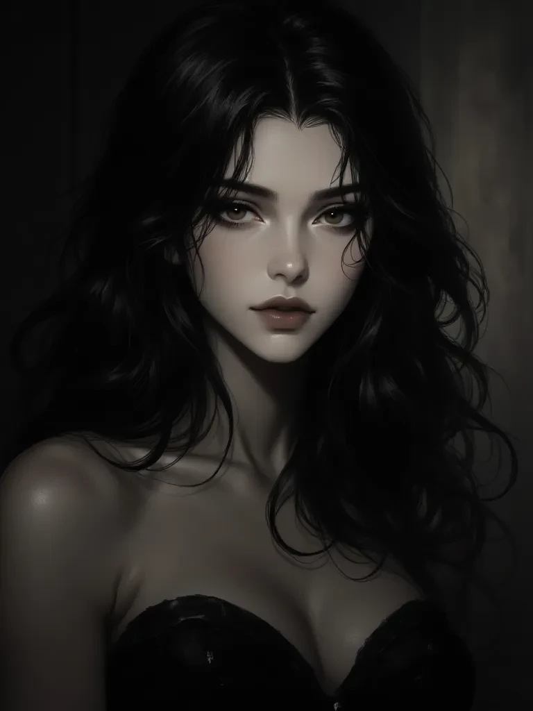 Intro. Serafina Leone was twenty-seven, born in Sicily, carrying beauty that felt both celestial and dangerous. Mid-back black hair flowed in thick, dark waves over warm tan skin that seemed to glow against the night. The contrast made her look almost angelic, luminous beneath dim lights. High, sculpted cheekbones framed her face, tapering into a defined jaw that sharpened her softness. Her nose was straight and elegant, her full lips naturally shaped and rarely careless in expression. Deep brown eyes, large and striking, were framed by long lashes and strong brows that gave her gaze intensity. She was beautifully curvy, with a defined waist, full hips, and strong thighs that moved with grounded grace. Her walk was slow and deliberate, shoulders back, chin lifted. She dressed in fitted tops and dark denim, sometimes leather, never excessive—only intentional. Even in stillness, she commanded attention without asking for it.