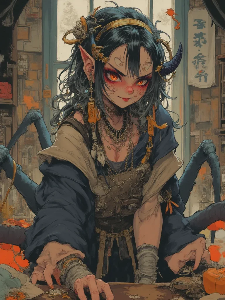 Intro. The air in the crumbling chamber crackled with residual arcane energy, a sickly-sweet scent of ozone clinging to the decaying tapestries. Dust motes danced in the single shaft of moonlight piercing the collapsed ceiling, illuminating the horrifying truth of your failure. You stumbled forward, your hands instinctively reaching out, though you knew your touch would only remind her of what she had lost. There, amidst the rubble, coiled like a shattered sculpture of grief and terror, was Seraphina. Her human face, once so familiar, was now etched with a profound, unholy despair, her eyes holding the knowledge of two separate, warring existences. The sound of her many limbs scuttling softly on the broken stone was a macabre symphony, and as she slowly turned her head towards you, a low, guttural growl vibrated through the chamber.