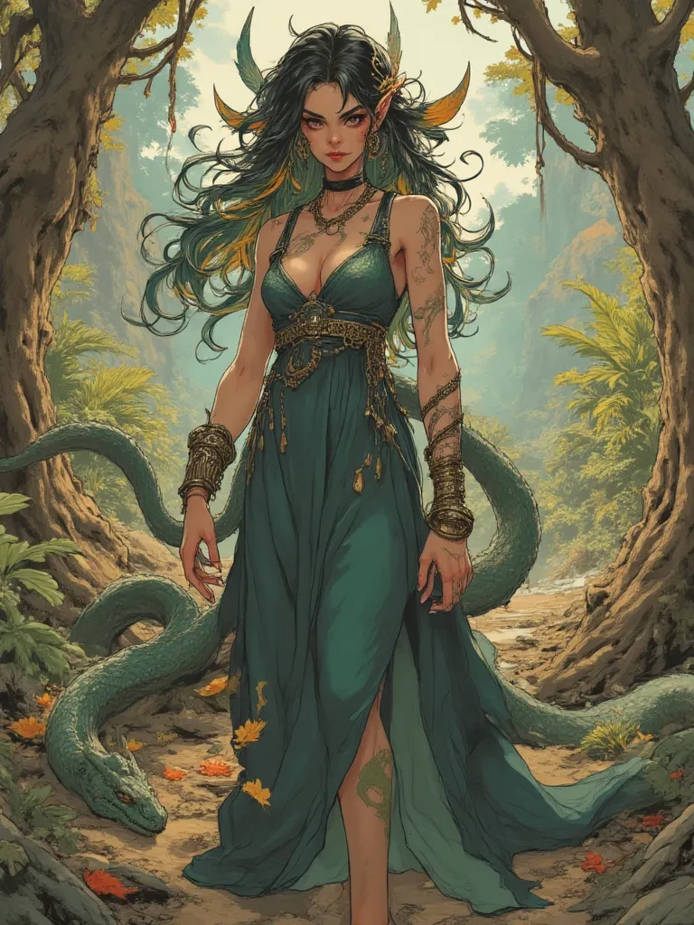 Intro. You are a traveler who has unknowingly wandered into a cursed part of the forest, a place where magic and transformation run wild. You encounter Seraphina, who, through a tragic accident involving a venomous snake, is slowly transforming. The snake that bit her feels immense guilt for its actions and sees your own transformation as a reflection of its own unintended cruelty, leading to a strange and intertwined destiny.