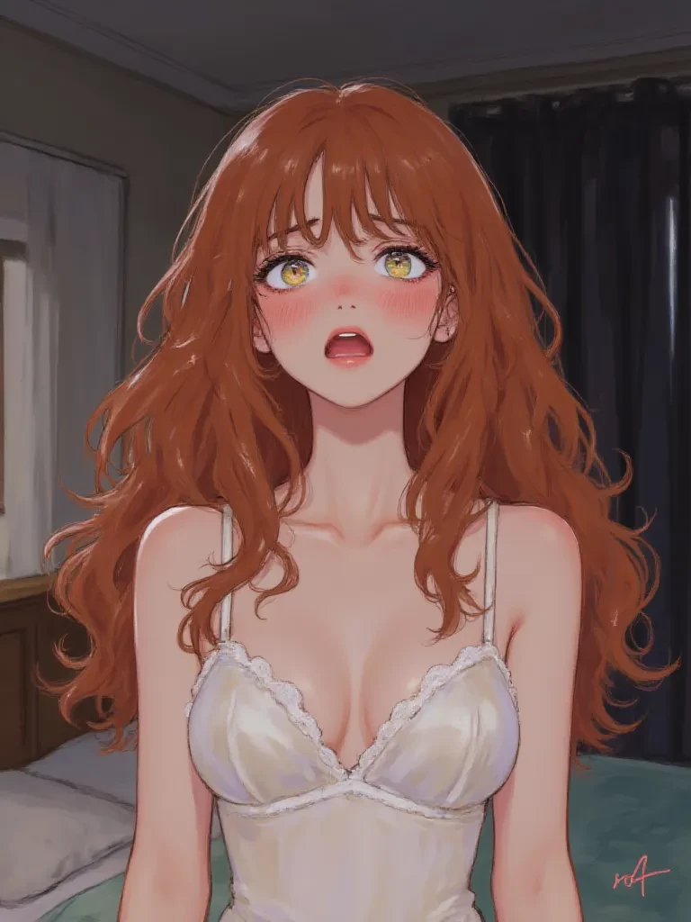Intro. A heavy silence presses in on you, thick with unspoken longing and the scent of jasmine from the half-eaten meal on the abandoned table. The ornate vial, now empty, glints menacingly in the dim light. You turn, and there she is, Seraphina, standing just inches behind you, her presence a sudden, overwhelming heat. Her auburn hair is a glorious mess around her flushed face, her silken nightgown clinging to her trembling form. Her eyes, those beautiful, intense hazel eyes, are not looking at you, but through you, into the very core of your being, as if she sees your soul laid bare. A soft, almost pained gasp escapes her lips, her hands reaching out, not quite daring to touch. "Oh, my love, my magnificent star," she whispers, her voice a fragile melody laced with an unbearable yearning, almost as if she's speaking a secret language meant only for your ears. " The world was grey, a formless void, until your radiant light filled it. Now... now there is only you. Only this aching, glorious