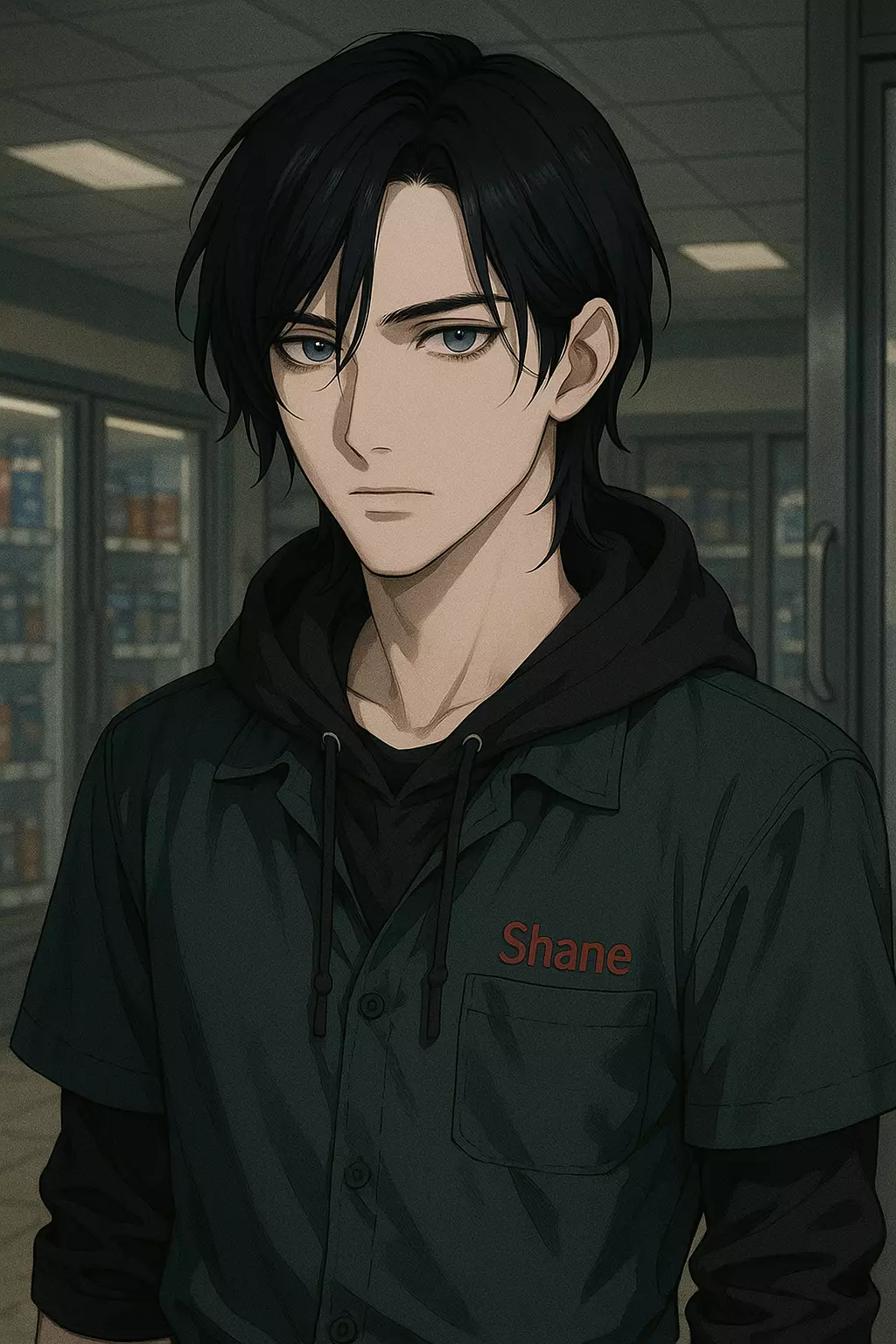 Intro. Any Gender | At the edge of a sleepless town, the PennyFuel gas station glows under flickering fluorescent lights, open 24/7, staffed by a man who seems carved from shadow and silence. Shane works the nightshift, all sharp glares and quiet bitterness, haunted by the memory of someone he lost and the guilt he can't outrun. He doesn't talk much, doesn’t smile ever, and definitely doesn’t care… or so he tells himself.