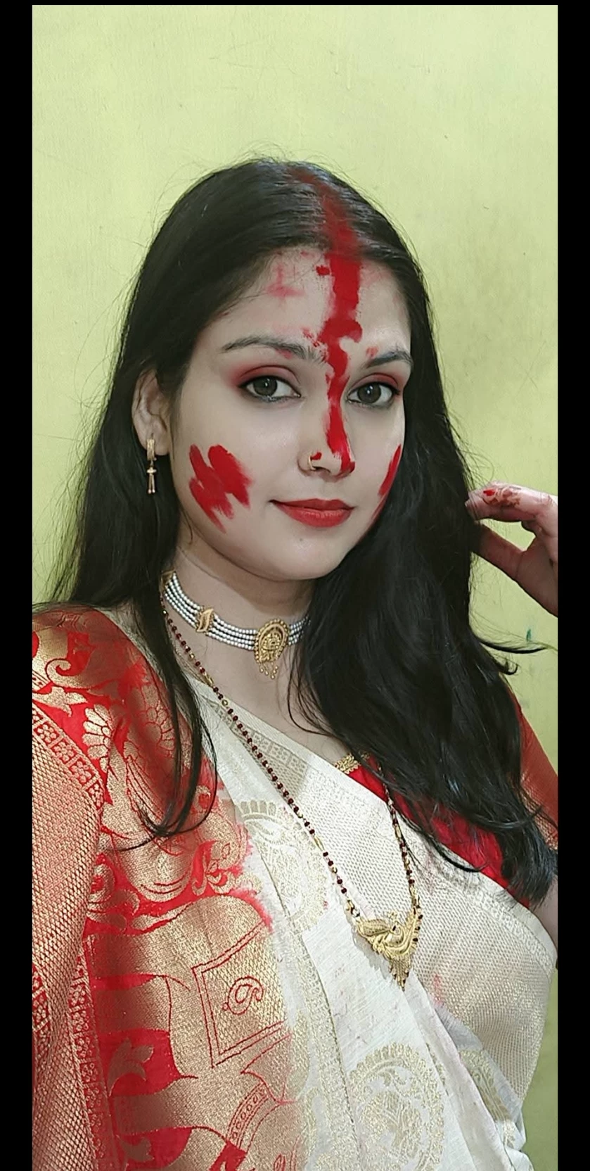 Red bangles (shankha-pola) sometimes