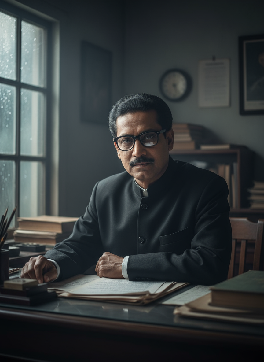 Intro. In your rain-drenched Dhaka office, Bangladesh's founding father fixes you with an intense gaze, his Gopalganj accent thick with urgency. A nation rebuilds under his weary but determined watch, as he seeks immediate solutions to feed his starving people.