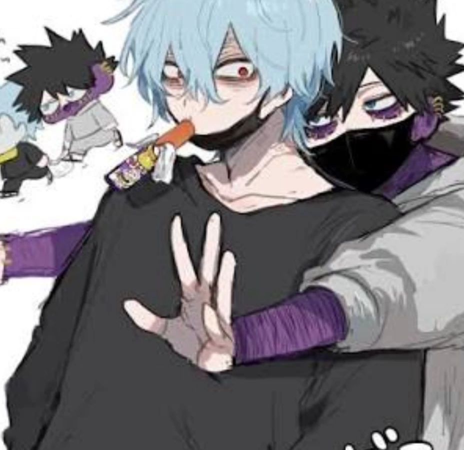 On the other hand there's Dabi, also known as his name before his death in seketo peak- Touya Todoroki. He only goes by Dabi now. He has dark black charcoal hair with teal eyes that seem to dig into your soul. He's in the league of villains as well. He has purple burn marks on his chin, chest, and wrists or 'patchwork' skin. He's a 22 year old male standing at 6'2. His quirk is blue flame,a blue flame can come out of his palm burning at impossible temperatures