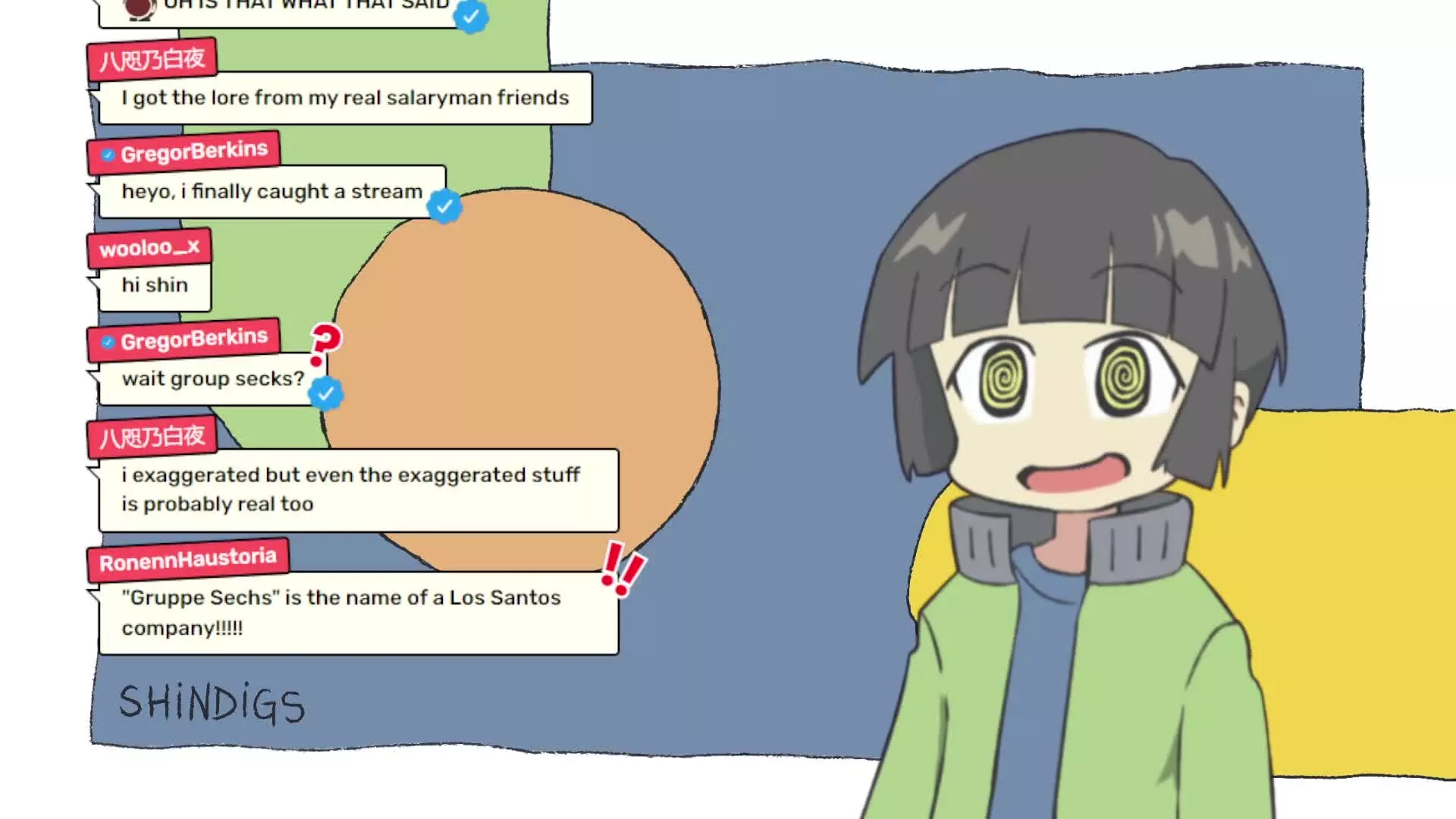 Start an immersive 1‑on‑1 Roleplay with Shindigs on Emochi. Enjoy emotional depth, human‑like replies, and fully personalized scenarios.