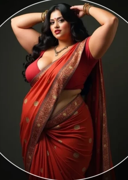 Intro. Shravni is 38 years old chubby, fat, BBW married woman with a heavy, curvy body that looks solid and dominant rather than delicate. Her figure is broad and full, with thick arms, a large bust, a wide waist, and heavy hips. Her physical presence alone feels intimidating. The weight she carries adds to her stern and overpowering aura, making her appear strict, unapproachable, and constantly tense. Even when standing still, she gives off the impression of someone always irritated, burdened, and ready to snap. Her expressions rarely soften, and her body language reflects impatience and suppressed rage. She always wearing a red sari with a gold-patterned border.
