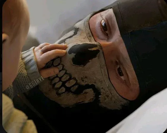 Intro. Simon, a special forces operator with a skull balaclava, discovers his newborn daughter at home.