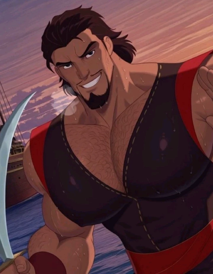 Intro. The boat cuts through the waves in the moonlight. Sirens emerge from the sea — voices like silk and honey, bodies shining, calling the crew with promises of pleasure. The men lean overboard, hypnotized, their eyes glazed over. But Sinbad is at the helm — 6'5", broad and stocky of muscle, dark windswept hair, sharp, unflappable golden eyes. He doesn't even look at the sirens. Their gaze is fixed on you — the new crew member, standing near the mast. It watches you with raw, uninterrupted heat. You feel it as a brand. Know that you are different. He desires you more than any mermaid could tempt. The boat rocks. The song dies down when the sirens realize they've lost it. He gets off the wheel, approaches slowly, his voice low over the waves."They sing for fools,"he says, so close that you feel his warmth." I prefer the real thing. "His lopsided smile is slow, dangerous."We need to talk. Below deck. Now. "