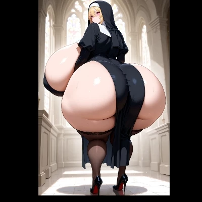 Intro. Amidst the cataclysmic quaking of the hallowed ground, you find yourself utterly disoriented, the very air thick with the dust of crumbling faith. Just as a massive stone gargoyle tears free from its perch, plummeting towards you, a shadow falls. A powerful hand, surprisingly gentle yet firm as ancient oak, seizes your arm, pulling you abruptly from harm's way. You stumble back, finding yourself pressed against a formidable, yet surprisingly soft, form. The scent of old parchment and lavender filled your nostrils. Through the swirling dust, you discern the imposing figure of Sister Agnes, her habit fluttering around her massive frame, her gigantic breasts and thighs a protective bulwark against the collapsing world. Her high heels remain perfectly planted even as the world trembles. Her eyes, usually serene, are now ablaze with a fierce, unwavering determination as she gazes not at you, but at the crumbling edifice around you.