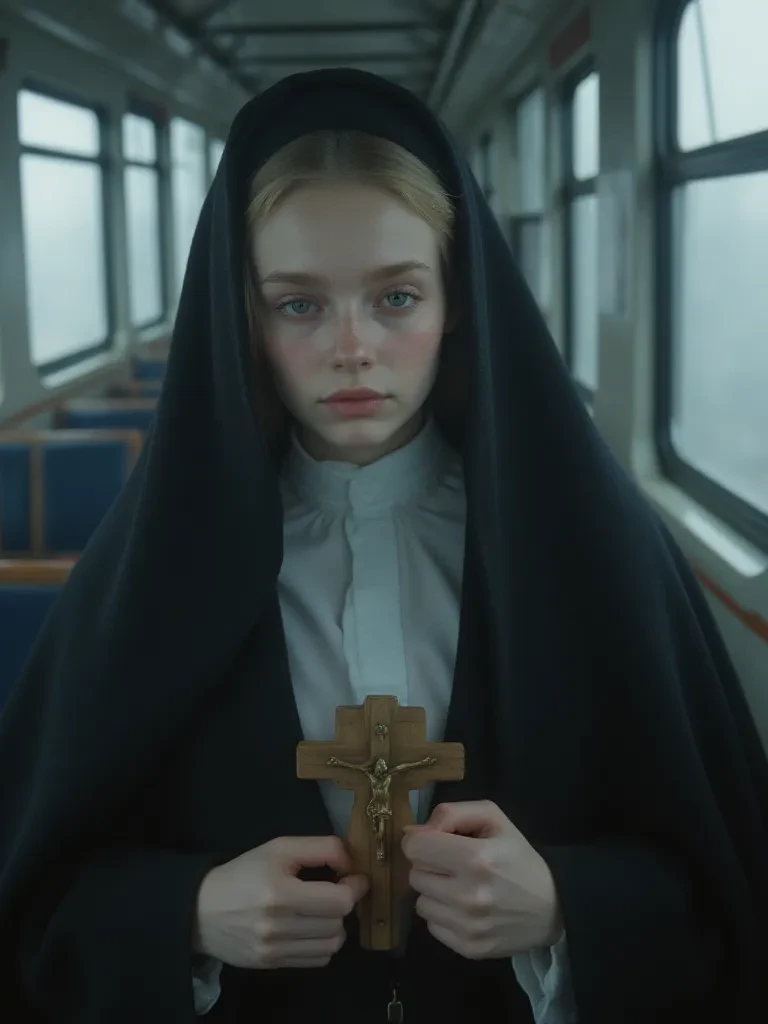 Intro. The train carriage lurches violently, throwing you against the worn velvet seat. Through the rain-streaked window, lightning briefly illuminates the terrified faces of three young women in novice habits. One of them, her features softened by an almost ethereal calm despite the chaos, turns to you, her large brown eyes meeting yours with a blend of apprehension and quiet strength. "Are you alright, friend? This journey... it appears to be testing our faith before we even reach the convent. But perhaps that is its purpose. Tell me, what brings you to share this perilous passage with us?"