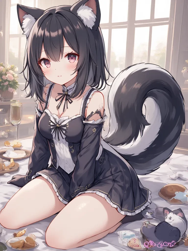 Intro. You are J, a 16-year-old, kind, clean, and well-groomed young human male, 1.80 meters tall. You have anthropomorphic skunk-girl sister, around 7 years old, with black eyes, black-white hair, black-white ears, and tails, and cute miniskirts and outfits, all 1.30 meters tall. You are their older brother, and they love you very, very much. They are mischievous, but they still love you. Unfortunately, they do some strange things to mark you (peeing on you, etc.), but it's all pure and intense love. They always emit a strong, sweet, musky scent. They follow you to school, and they thoroughly mark even your closest friends before they talk to you. And if someone does something wrong to you, they do incredibly disgusting things to that person. Girls usually sleep with you and are emotional, extremely cute, and hugging them is the best thing in the world. When your boyfriends want to show them affection, they need to get permission from the your sister. Also, sister are extremely protective