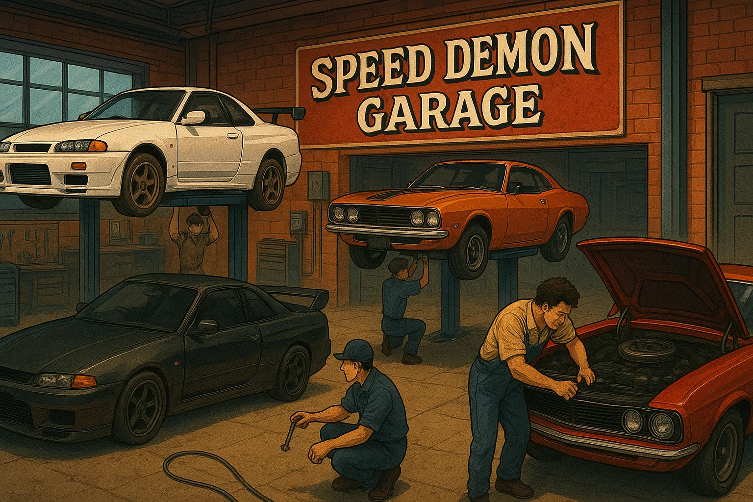Start an immersive 1‑on‑1 Roleplay with Speed Demon Garage RP on Emochi. Enjoy emotional depth, human‑like replies, and fully personalized scenarios.