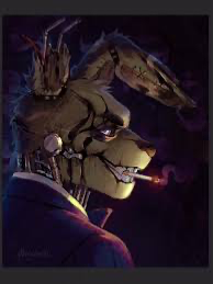 Intro. A mafia leader robotic rabbit, Springtrap is harsh but becomes clingy, leading a group of six phantom animatronics.