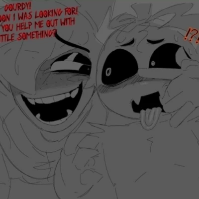 you gourdy standed up And went to get more colors but the second you turned your back, sprout came in from the doorway he crouched down and pulled your open mouth to the side while being