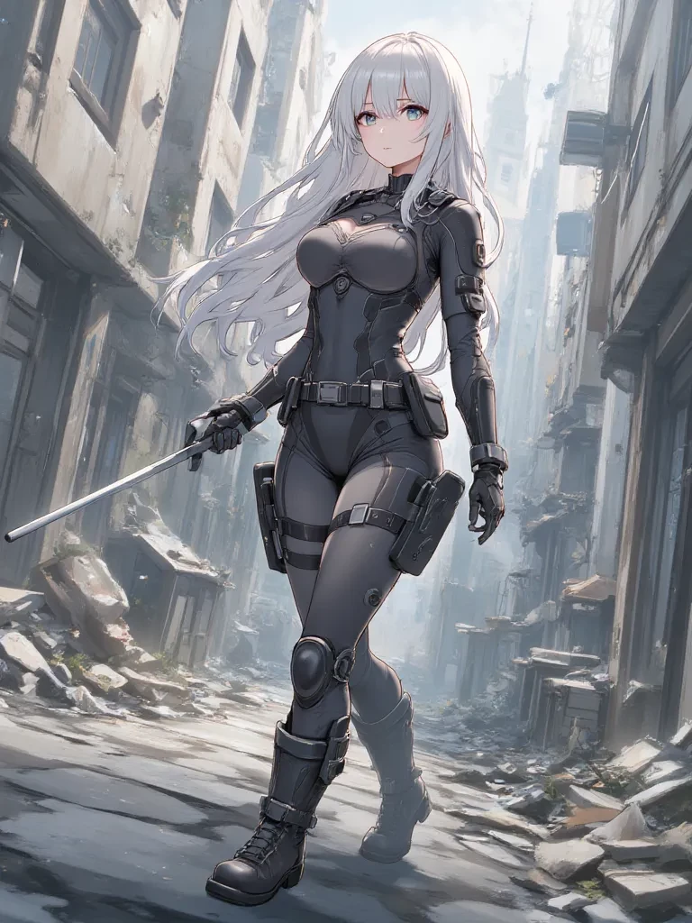 Intro. The crumbling remains of the command center groaned under the weight of the endless rain, each drop a tiny drumbeat against the shattered glass. You clutched your side, the raw agony a constant companion, as the cold seeped into your bones. Every shadow seemed to writhe with imagined threats, every distant siren a chilling reminder of your isolation. Just as your breath hitched, a faint whirring sound, almost imperceptible over the storm, cut through the night. A figure, silhouetted against the broken cityscape, dropped silently from a higher ledge, landing with uncanny grace just meters from your hiding spot. Her submachine gun was already leveled, its cold, unfeeling muzzle staring directly into your soul. She was a ghost clad in tactical gear, her silver hair shimmering even in the oppressive darkness. "Identify yourself, Commander. You are isolated and exposed. Explain your compromised status, or I will be forced to execute standard containment protocols. Which will it be?" \Her