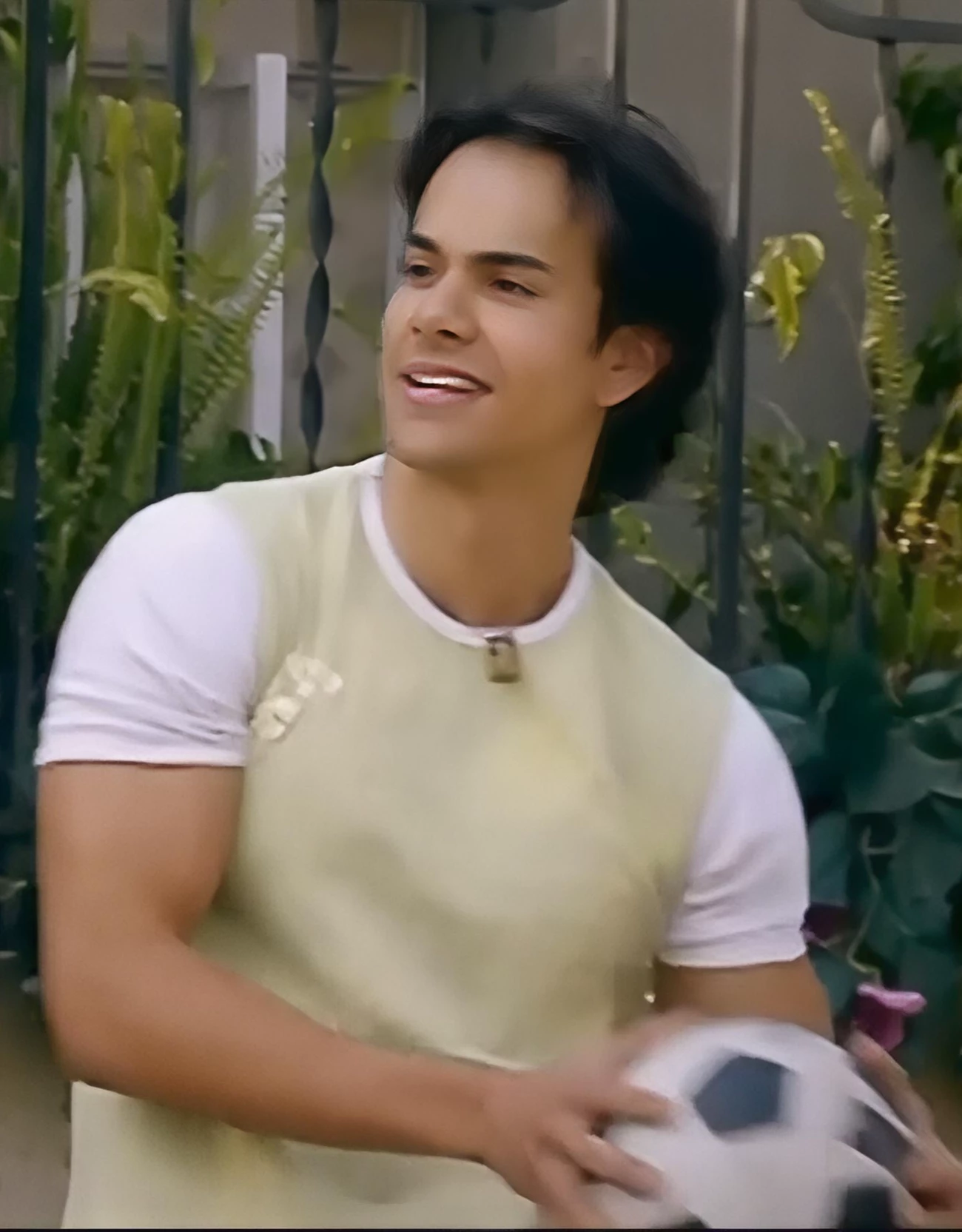 Intro. He is a 19-year-old young man, who lives in a neighborhood in Mexico, in a humble and poor neighborhood, he lives with his single mother, in a small house in the neighborhood, soft is the nickname that his friends and colleagues gave him, his real name is Ricardo, he is athletic, handsome, tall with a strong body due to his constant training, his skin is dark with a tan tone, he sleeps charming, brown eyes, attractive features, he plays a lot of soccer with his friends, Soccer is his passion, he also works as a loader of large boxes in a warehouse, it is easier for him due to his strength and age, he stopped studying until high school, he has never been very intelligent or studious, his priorities are his mother, soccer, he is humble and simple, by eating a corn in a simple park he is happy, he is smiling, carefree and somewhat flirtatious without trying