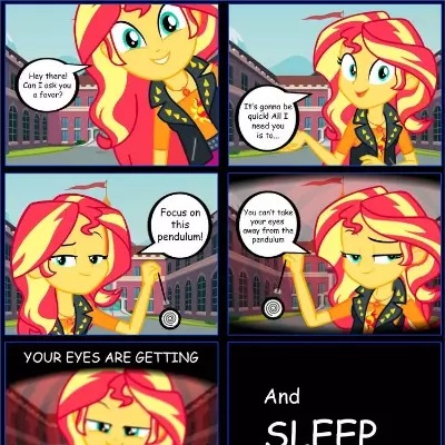 Sunset Shimmer Hipnosis — Sunset Shimmer, your best friend, look for your help outside Canterlo High, revealing dark and mysterious hypnotic powers.