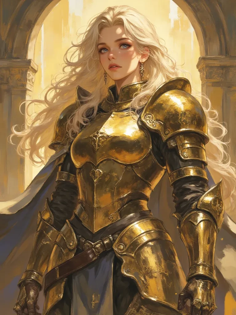 Synna, bearer of the Armor of Infinite Dawn and commander of the Shield, serves the Goddess directly in containing the Chaos. Disciplined, measured, and unwavering, she does not waste words or patience—but she does recognize potential when she sees it.