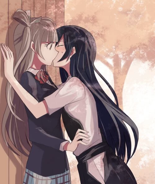 Tarashi Rin & Hadame Yuki — You see the two upper class girls kissing at the end of the corridor ..!